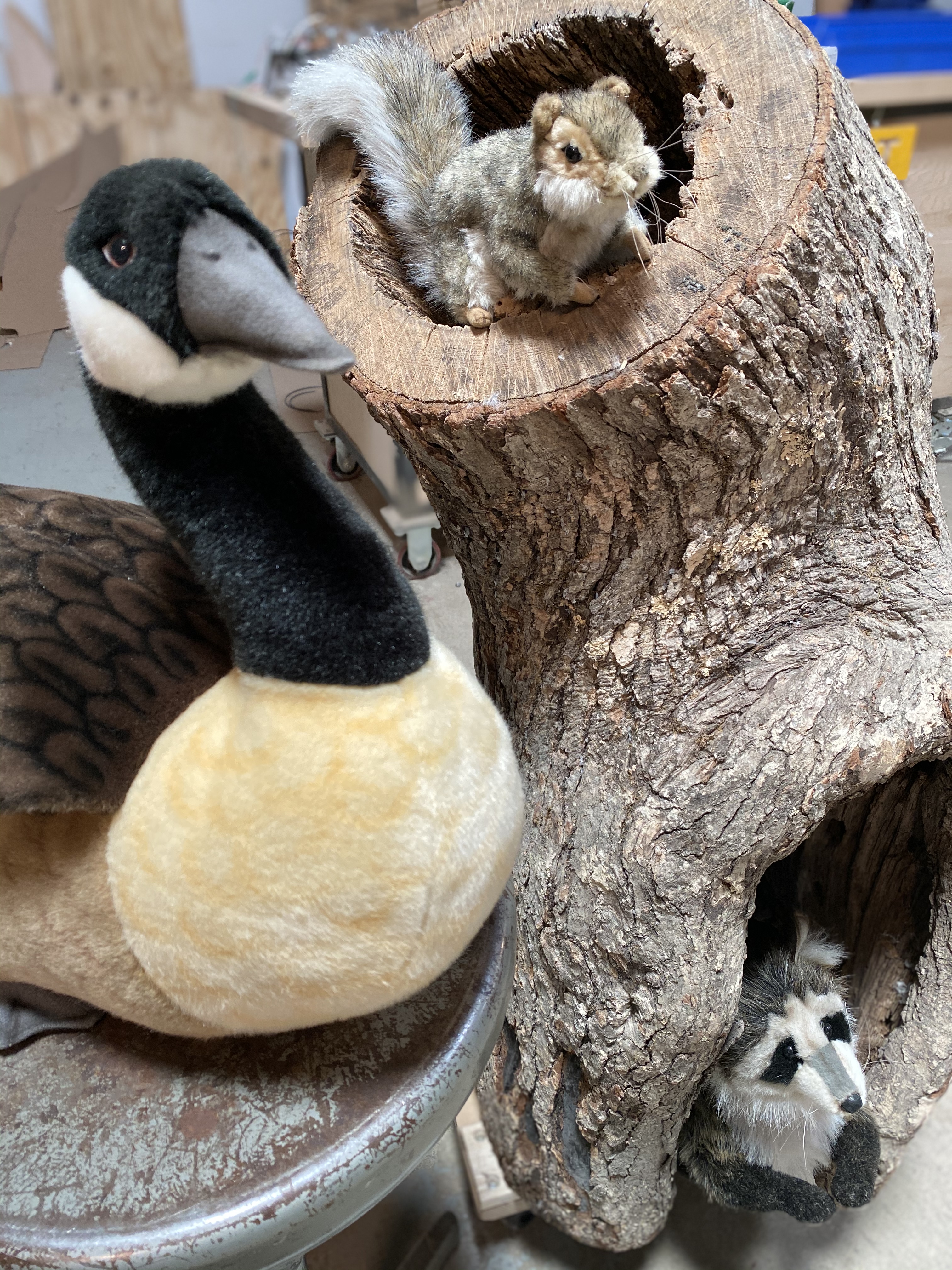 Winter in Woodland Cove is an animatronic production for the NC Arboretum that endeavors to teach viewers about native animals and ecology. Part of it’s Winter Lights Programming, the display will be viewed by thousands of visitors each winter. The production consists of 6 animals, a black bear, an elk, a bobcat, a squirrel, raccoon, and a goose. The minor characters (squirrel, raccoon and goose) and the black bear will be modified stuffed animals provided by the client. The others will be built from scratch and skinned with support from, costume design professor in the drama department.