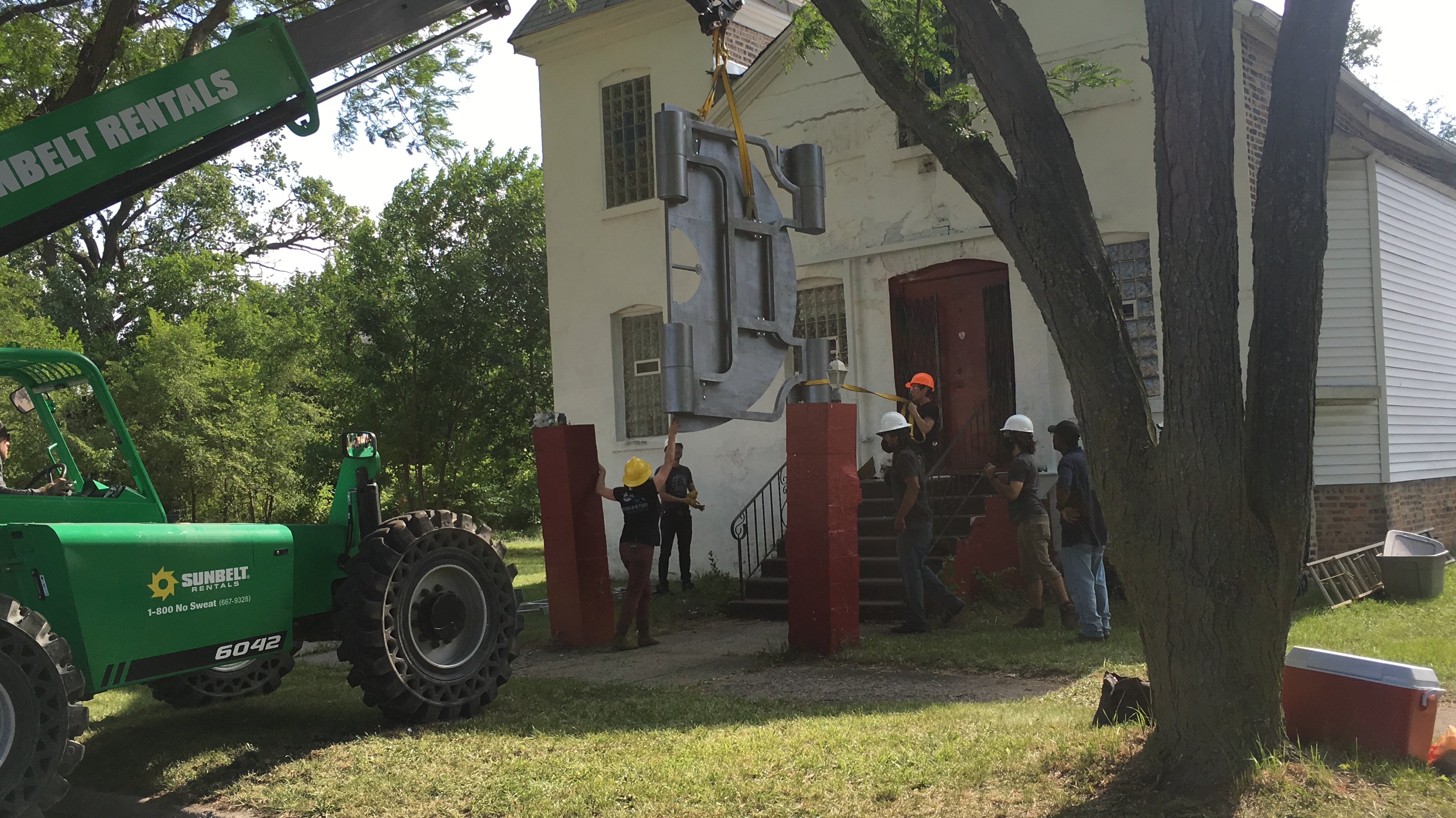 I served as the lead Engineer, fabricator and project manager for Mel Chin and S.O.U.R.C.E Studio’s Safehouse Temple Door. I led the installation at the Sweetwater Foundation’s Civic Arts Church in Chicago Ill. in June 2021. Working with Mel and S.O.U.R.C.E was inspirational as always and resulted in a lot of learning and new ways of thinking about collaborative challenges and problem solving. Connecting with the folks at the Sweetwater Foundation (SWF) and learning about the work they are doing in regenerative design was deeply inspirational and reminded me that there is important, world changing work that can be done in small local communities. This gives me hope for a future of sustainable, community driven infrastructure and localized economies.