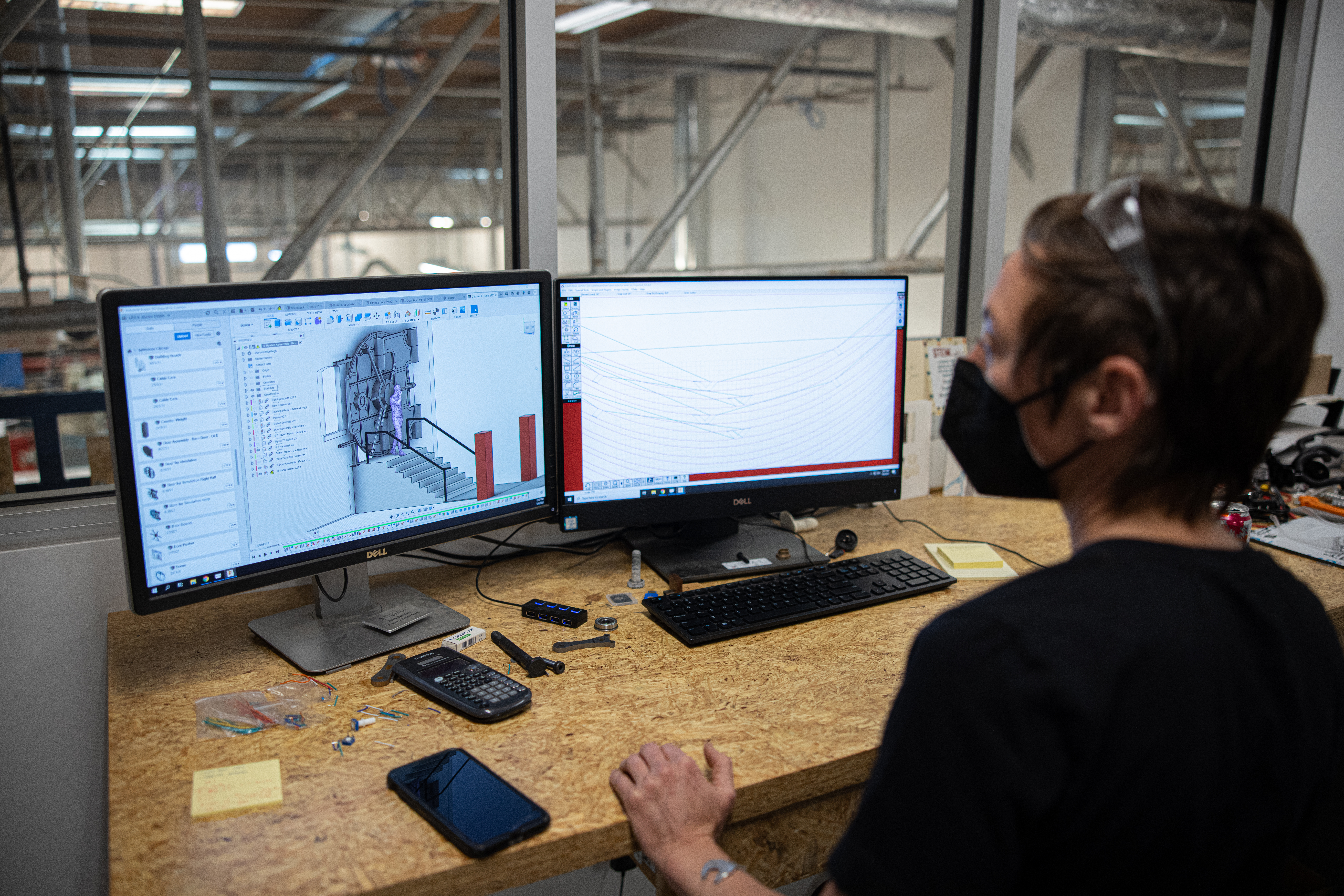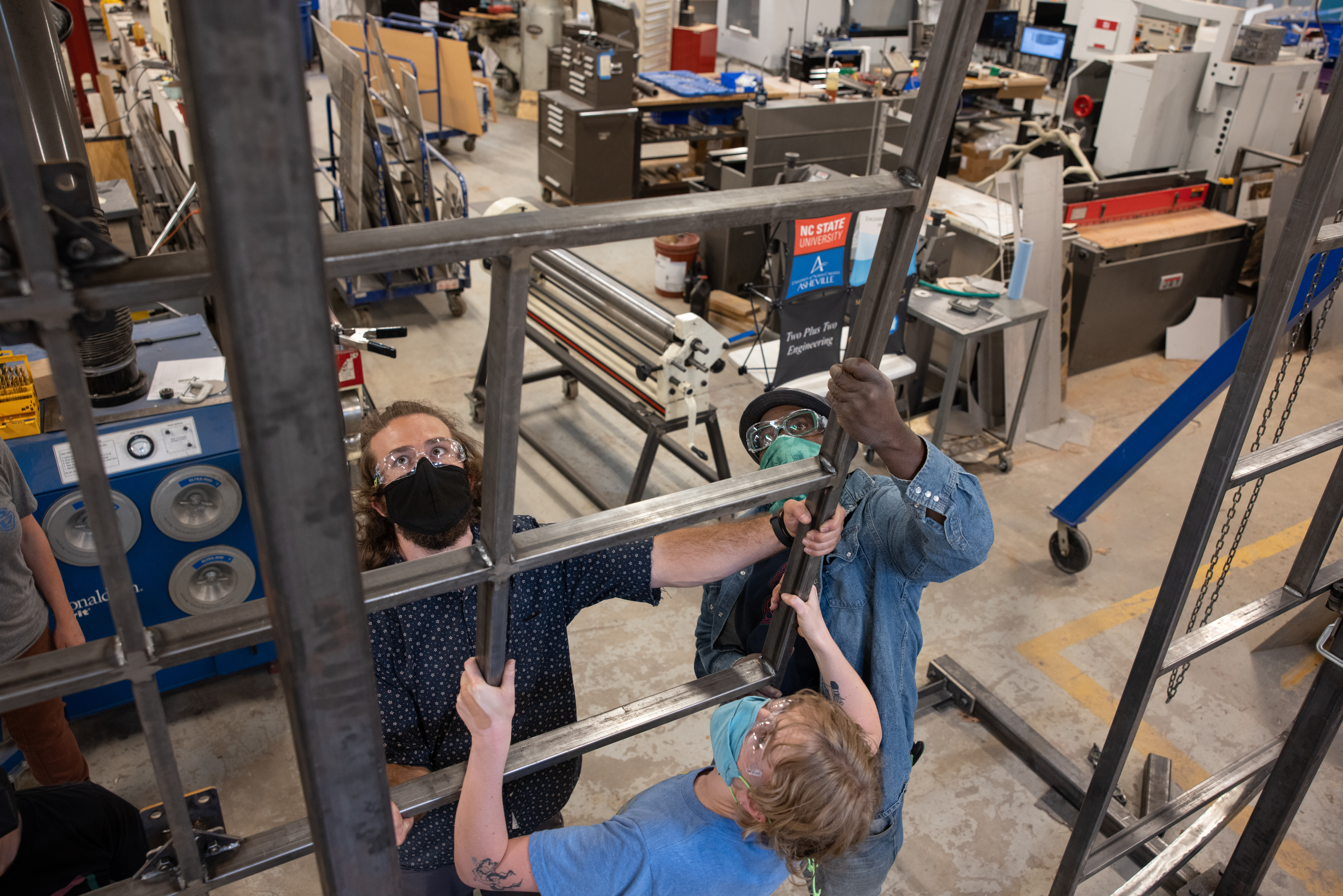 The door was engineered and fabricated at UNC Asheville’s STEAM studio. My colleague Susan Reiser and I taught a summer term iteration of her Creative Fabrication course that served as the necessary dialog between the artist and the community in which the door was installed. Students in the class designed the user interface and lock mechanism for the door. Weekly design reviews were conducted with Mel and Emmanual to ensure the designs fit the needs of both stakeholders.